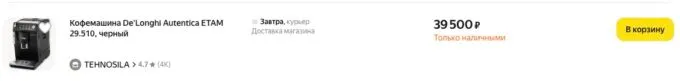 Обычно такие кофемашины стоят под 60 тысяч, но сейчас на Яндекс Маркете флагманскую De’Longhi Autentica можно урвать всего за 39 500 рублей. Также не забывайте, что многие банки готовы отсыпать кэшбек за покупки на этой платформе.