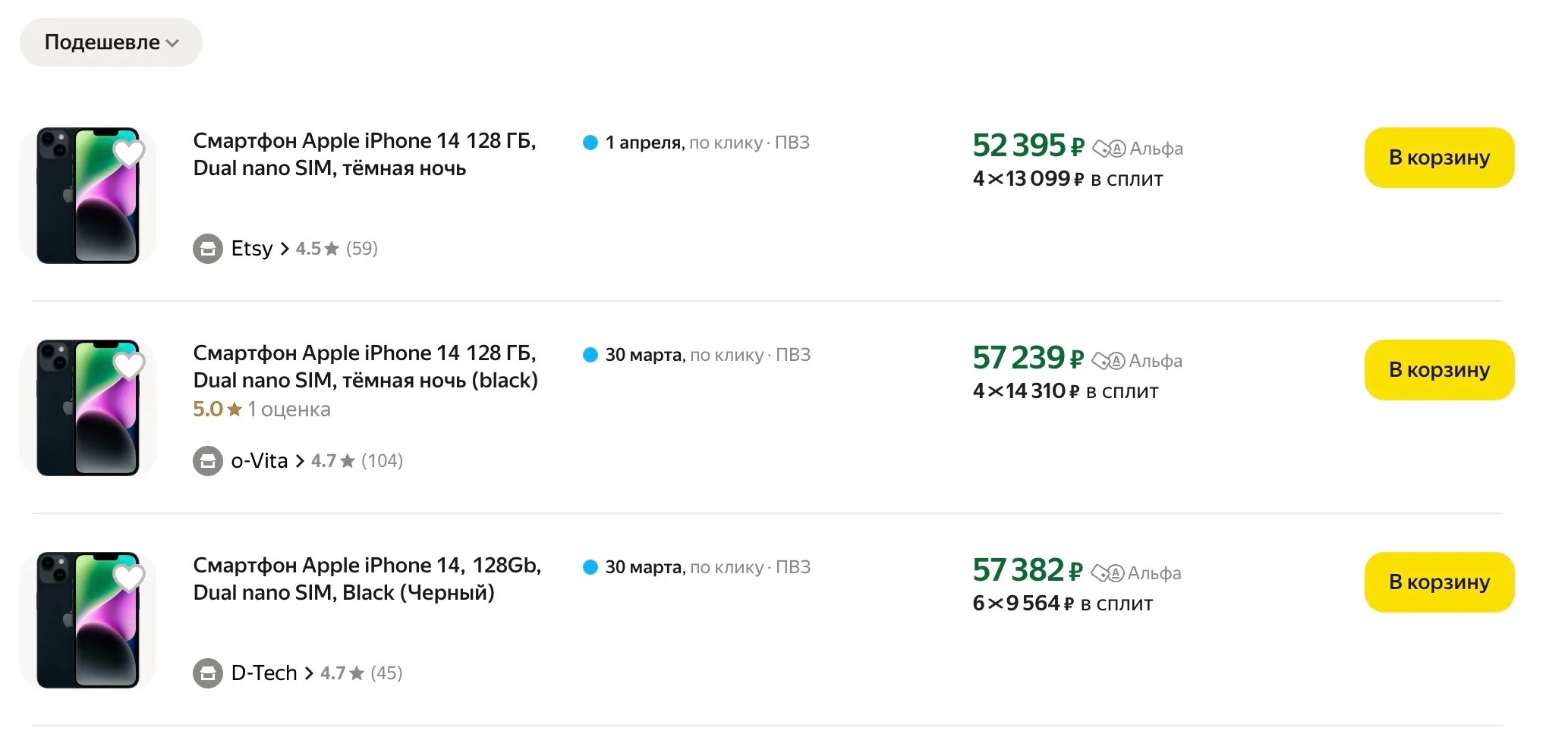 Проверяйте цены на iPhone 14 — возможно, для вас Маркет сделал персональную скидку.