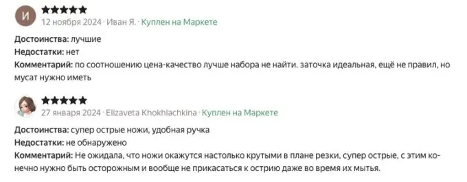 Кстати, оценки счастливых владельцев подтверждают качество HuoHou Stainless Steel Kitchen Knife Set. На маркетплейсах он стабильно получает высокие отзывы — 4,9 из 5 на основе сотен рецензий. Пользователи хвалят отличную заводскую заточку, прочность материалов и удобную конструкцию.