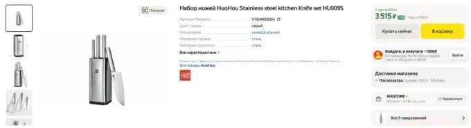 Прямо сейчас на Яндекс Маркете стильный набор ножей Xiaomi HuoHou Stainless Steel Kitchen Knife Set (HU0095) можно урвать за 3550 рублей, а с кэшбеком некоторых банков он обойдётся ещё дешевле.
