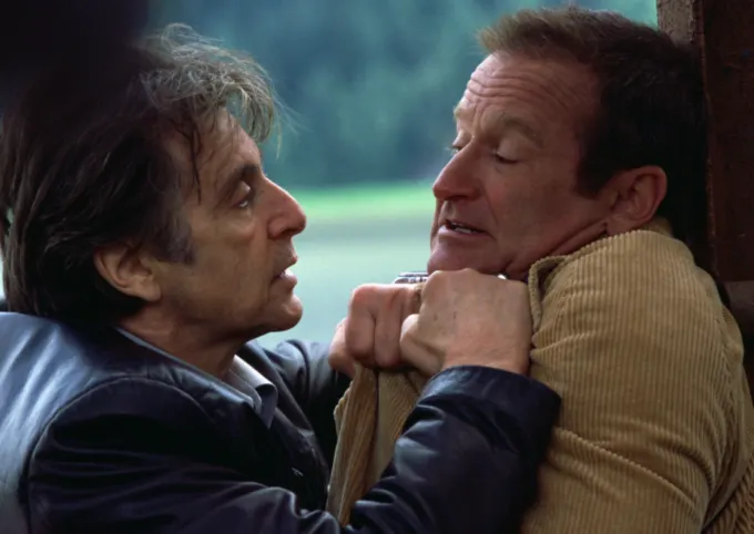 Не совсем типичный Нолан. Это ремейк норвежского триллера, и он вышел таким… Средним. Аль Пачино играет копа, который едет на Аляску расследовать убийство, а заодно мучается от бессонницы из-за вечного дня. Робин Уильямс в роли злодея – неожиданно, но приятно. Сюжет простой: детектив гоняется за убийцей, попутно борясь с собственной совестью после случайной (или не совсем) ошибки. Атмосфера давит: холод, белые ночи, чувство вины и все такое, но напряжение не дотягивает до того, что могло бы быть. Все слишком предсказуемо, а голливудский лоск сглаживает остроту оригинала. Это крепкий триллер, но без искры.