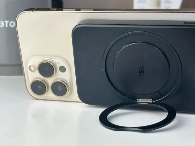 Еще это полезная штука 2-в-1. На передней стороне есть кольцо, с которым можно поставить смартфон под определенным углом. Например, чтобы смотреть видео во время зарядки. Кольцо вращается по кругу, его можно спрятать в нишу. При желании им даже можно пользоваться как попсокетом.