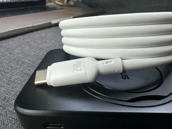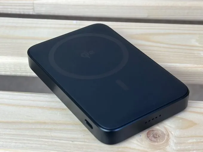 Это пауэрбанк с полной поддержкой беспроводной зарядки смартфонов Apple. Во-первых, он работает со стандартом MagSafe, во-вторых, с Qi2. Компактная внешняя батарея хорошо держится на магнитах на задней панели iPhone (самое главное — встает в правильное место) и заряжает телефоны с максимальной мощностью. В случае техники Apple — 15 Вт.