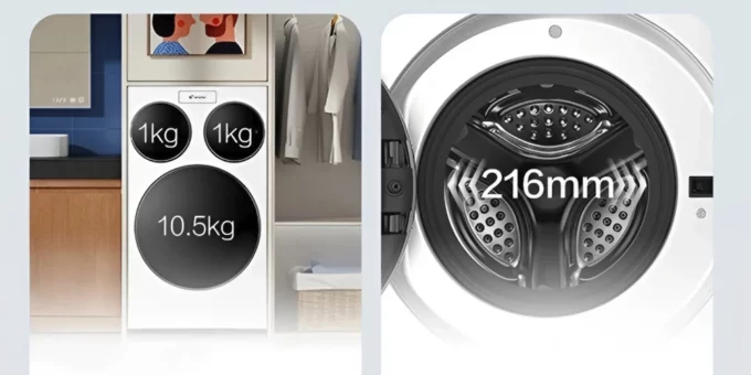 Своими барабанами аппарат похож на камеру iPhone 16 Pro Max. Три барабана позволяют стирать три вида одежды одновременно. Например, кофты и штаны можно отправить в основную секцию, а носки и нижнее белье запустить по разным мини-барабанам. Основной барабан вмещает до 10 кг белья, дополнительные — по 1 кг каждый.