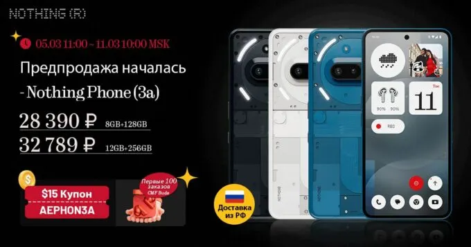 Пару дней назад компания Nothing представила смартфоны Phone (3a) и (3a) Pro. Устройства уже можно заказать в Россию из магазина бренда на Али.
