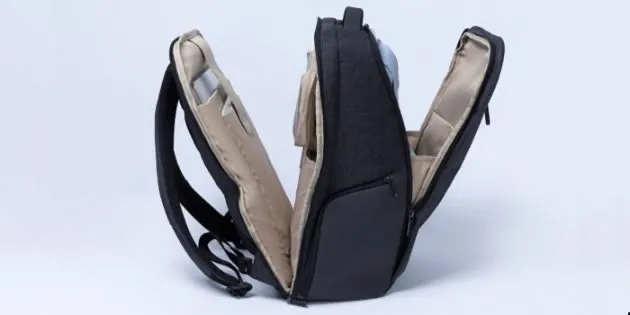 Дизайн Xiaomi Travel Business Multifunctional Backpack 2 продуман до мелочей. Рюкзак раскрывается на 180° с двух сторон, позволяя легко доставать вещи даже со дна сумки. В основные отсеки можно упаковать два ноутбука, планшеты, наушники и другие аксессуары к ним. Разумеется, сумка сшита из влагоотталкивающих материалов, так что дождь ей не страшен. Дополнительный бонус — съёмная косметичка, в которую можно сложить провода, зарядки и личные вещи. Её удобно использовать в отеле — отстегнул, попользовался содержимым, а потом просто вернул обратно, чтобы ничего не потерять.
