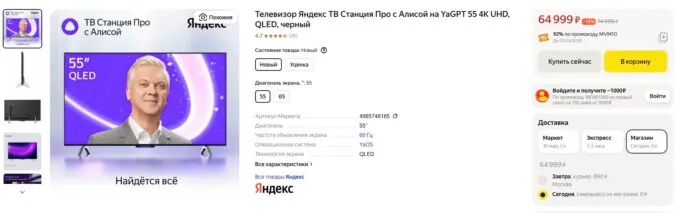 Цена: от 58 499 рублей за 55 дюймов и 87 440 рублей за 65 дюймов.