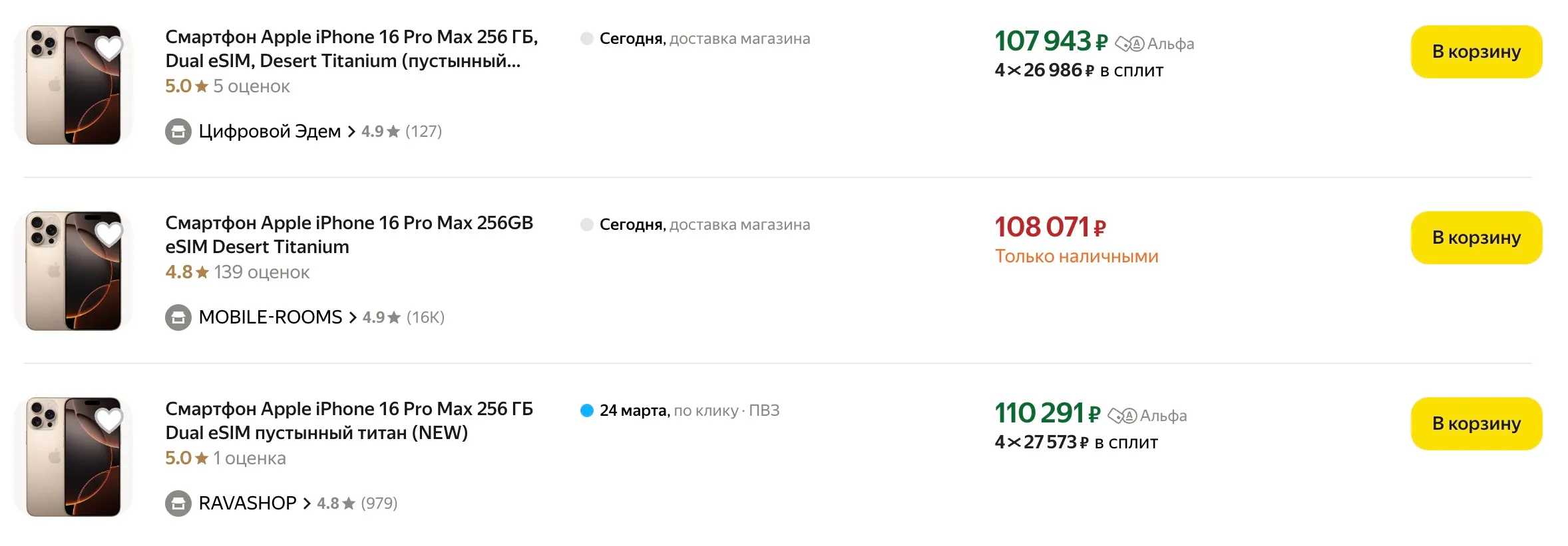 Подешевел и iPhone 16 Pro — сейчас его можно купить дешевле 100К. Мы нашли варианты за 90-92 тысячи рублей. Можно смело брать эту модель, отличий от устройства Max всего два: во-первых, экран меньшего размера, во-вторых, в базе телефон имеет всего 128 Гбайт встроенной памяти.