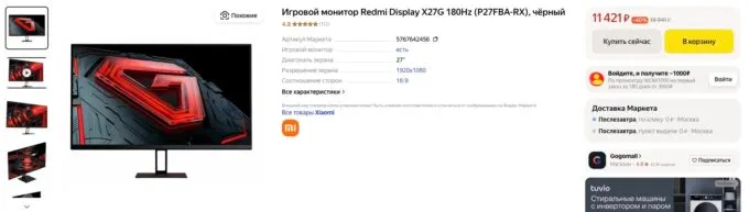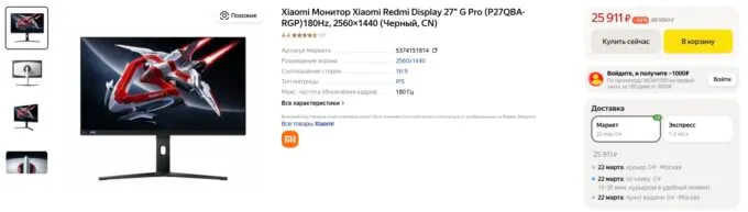 Xiaomi Redmi Display X27G 165Hz — самый доступный, но при этом качественный монитор для игр и работы. Девайс может похвастаться 27-дюймовым IPS-экраном с разрешением 1920×1080 пикселей и частотой обновления 165 Гц. Для игр предусмотрен режим низкой задержки 1 мс (GtG) и AMD FreeSync, а для работы с графикой — точность цветопередачи Delta E < 2 и охват 99% гаммы sRGB.