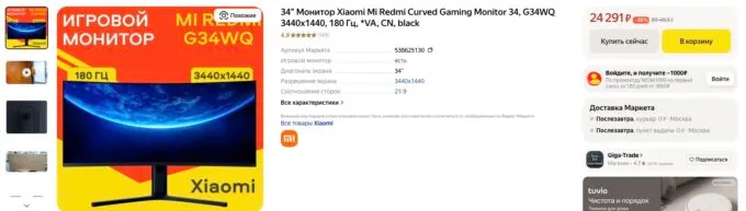 Xiaomi Mi Curved Gaming Display — игровой монитор с ультрашироким изогнутым экраном на 34 дюйма. Девайс предлагает VA-матрицу с разрешением 3440×1440 пикселей, частотой обновления 180 Гц и изгибом 1500R. Один такой монитор заменит вам два 27-дюймовых экрана. Лучше всего он подходит для игр и работы с видео.