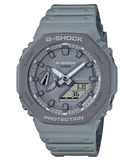 Casio G-SHOCK GA-2110ET-8AER — прочная и легкая модель, созданная для активного образа жизни. Главная фича этих часов — технология Carbon Core Guard, которая обеспечивает повышенную защиту механизма от ударов и деформаций с помощью карбоновых волокон в пластиковом корпусе.