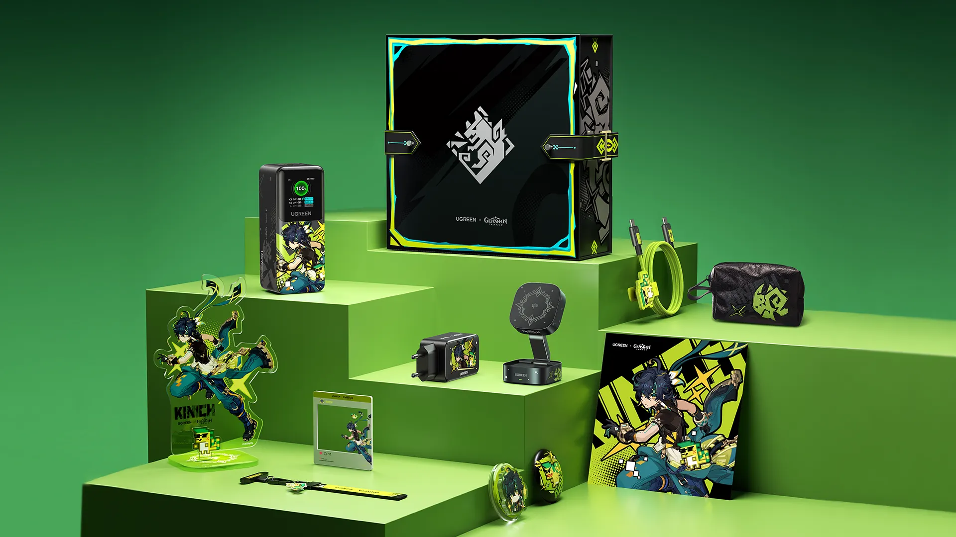 В серию вошли знакомые нам аксессуары, но выполненные в дизайне по мотивам Genshin Impact. Устройства получили расцветку в стиле Кинича — охотника на заврианов из Натлана. Так, UGREEN Nexode Power Bank версия Genshin Impact