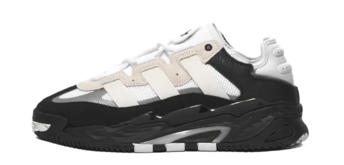 Возвращаемся к adidas! Перед вами черно-белые Niteball – казалось бы, массивные, но дышащие и легкие кроссовки. За амортизацию отвечает технология Lightstrike, а футуристичный силуэт сочетается со светоотражающими деталями. Еще один важный момент: эта обувь частично выполнена из переработанного материала.