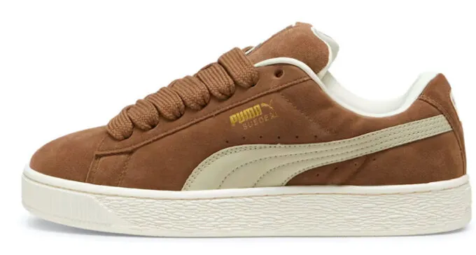 Начинаем с зеленых Suede XL от немцев из Puma. Это классические Suede, но выполненные в XL-формате. То есть, перед вами дутые кроссовки с уже привычным дизайном, верхом из натуральной замши и массивными шнурками. Нравились стандартные Suede? Тогда эта модель понравится в два раза сильнее.