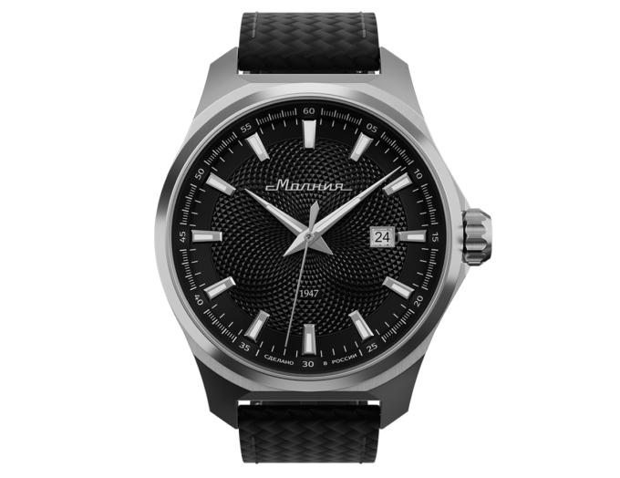 Премиальная модель Молния Гранд ТСВ 8215 — часы, в которых идеально выдержан баланс между эстетикой и технологиями. Под сапфировым стеклом с антибликовым покрытием скрывается утончённый циферблат, сочетающий два вида гильоше. Это создаёт выразительную игру света и тени, придавая циферблату глубину и динамику. Тонкие стрелки типа Baton и объёмные индексы с покрытием Super-LumiNova отлично читаются даже в кромешной тьме.