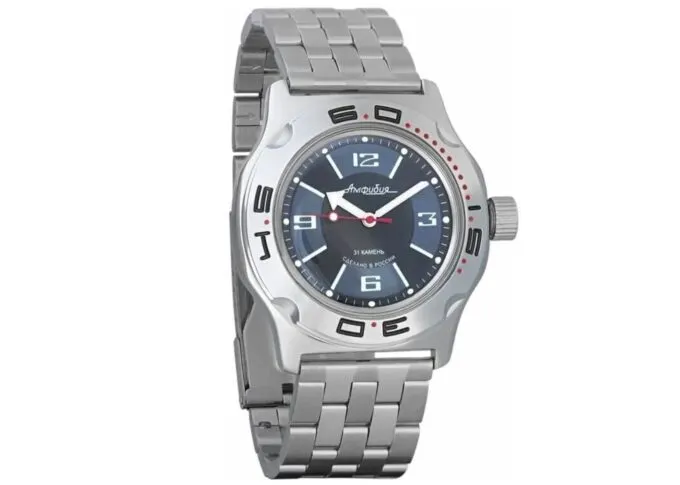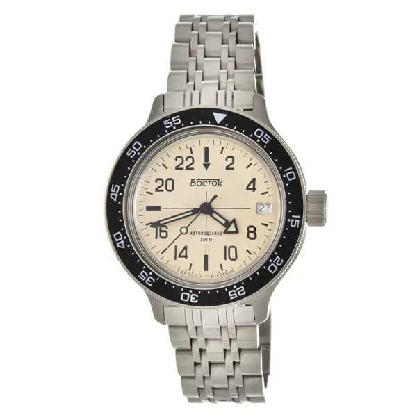 Корпус и браслет в Восток Амфибия 100510 выплавлены из нержавеющей стали, стрелки покрыты флуоресцентным составом, а органическое стекло максимально устойчиво к царапинам. Ещё одна имбовая фичавлагозащита 200WR, позволяющая использовать часы даже при дайвинге.