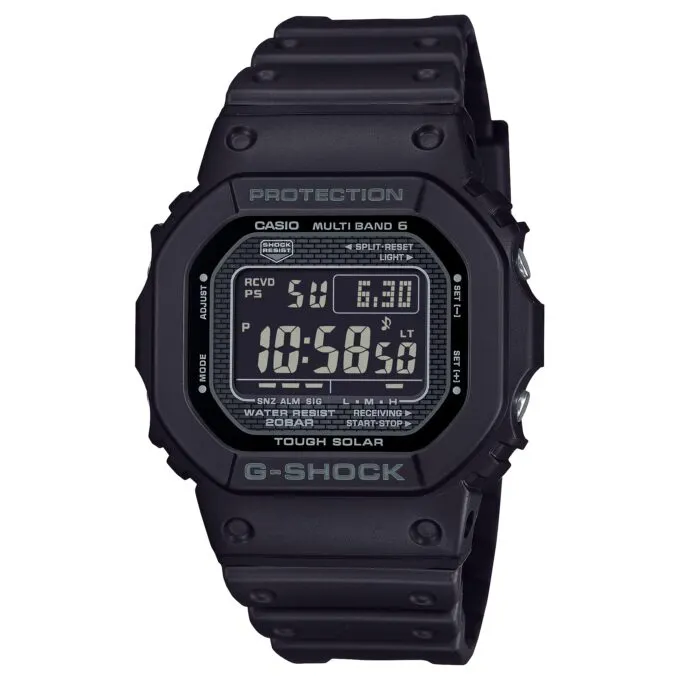 Лимитированная модель Casio G-Shock GW-5000HS-1E флексит солнечным питанием и радиоконтролем точного времени Wave Ceptor. Часы оснащены механизмом калибра 3495 и поддерживают 12/24-часовой формат времени, вечный календарь до 2099 года, мировое время (48 городов + 2 дополнительные зоны) и быстрое переключение между часовыми поясами.