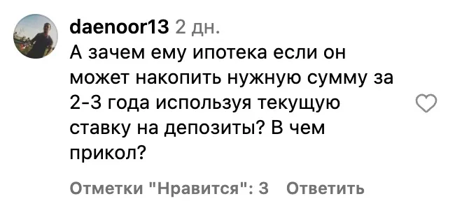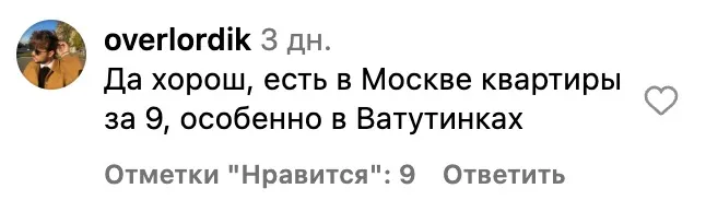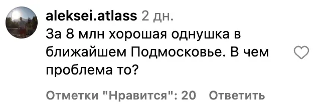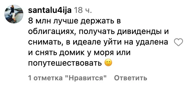 Многие комментаторы тихо позавидовали будущему покупателю недвижимости — далеко не каждый имеет стабильную получку в 300К и несколько накопленных миллионов. Лучшая реплика по теме: