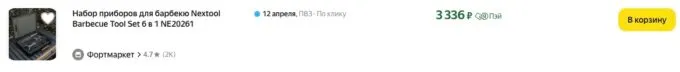Прямо сейчас на Яндекс Маркете фирменный набор шашлычника от Xiaomi — Nextool Barbecue Tool Set (NE20261) — можно урвать за 3336 рублей. А с кэшбеками некоторых банков он обойдётся дешевле.