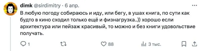 В-третьих, слушайте музыку, радио, аудиокниги, подкасты — это не даст вам заскучать. Так вы прогуляетесь и получите новую информацию:
