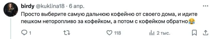В-четвертых, ставьте цель — например, дойти до дальнего ТЦ и закупиться товарами или дотопать до кофейни на другом конце города, чтобы наградить себя напитком: