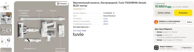 Прямо сейчас отличный пылесос Tuvio TS02HBHW можно купить на Яндекс Маркете со скидкой всего за 10 660 рублей. Также не забывайте, что многие банки готовы отсыпать щедрый кэшбек за покупки на этой платформе.