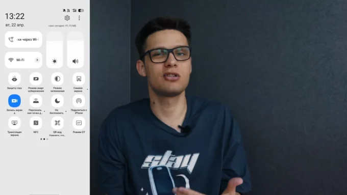 Здесь оболочка Realme UI 6.0, и Дима не большой ее фанат. В прошивке есть нюансы, которые немного подбешивают — начиная от стиля значков и заканчивая динамическим островом. Вопросы есть и по дизайну шторки с быстрыми настройками.