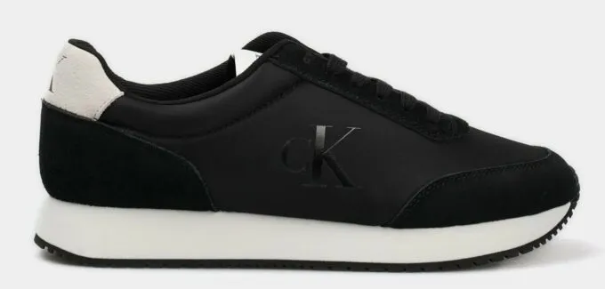 Финальный босс! Это черные кроссовки Retro Runner с верхом из натуральной замши. Название говорит само за себя: дизайн и силуэт этого айтема отсылают нас к винтажным моделям Calvin Klein Jeans. Если вам нужны casual-кроссовки, это отличный вариант.