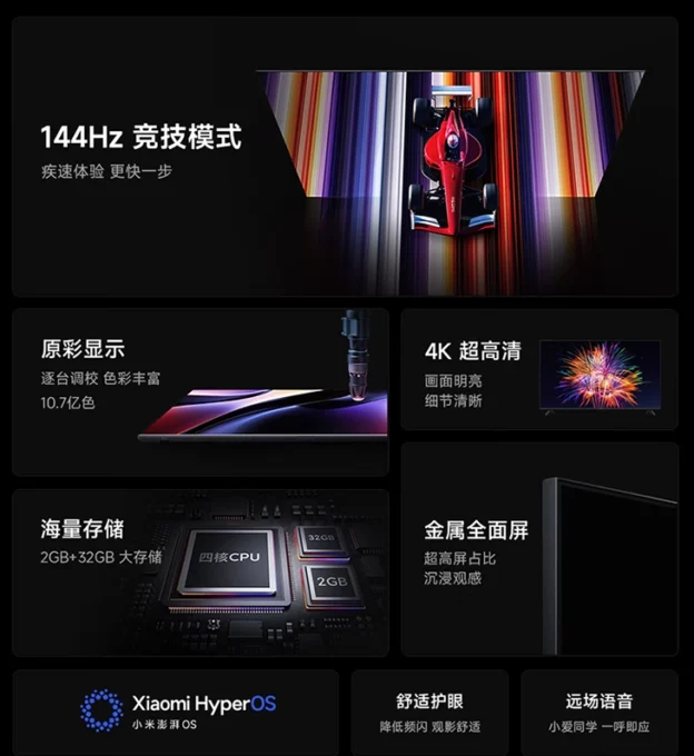 Redmi A будут доступны в размерах 50, 55, 65, 70 и 75 дюймов. Модели получили пластиковый корпус, экран с разрешением 4К и тонкими рамками и актуальную операционную систему HyperOS.