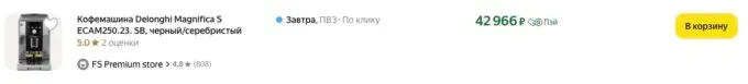 В последнее время за De’Longhi Magnifica S Smart стабильно просили около 50 тысяч, но сейчас на Яндекс Маркете стильную кофемашину можно купить за 42 966 рублей. Также не забывайте про кэшбеки некоторых банков, которые помогут сэкономить ещё больше.