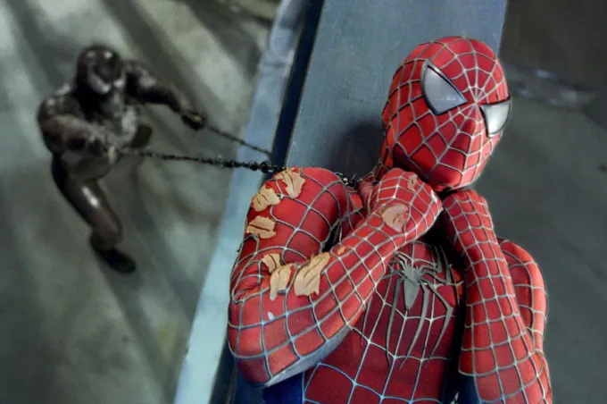 В первом «Человеке-пауке» с Тоби Магуайром культовых сцен так много, что проще считать культовым вообще всё: от первого выстрела паутиной до поцелуя вверх ногами. Но время не пощадило «Человека-паука». Многие моменты сегодня кажутся адски неловкими, особенно те, где как-то задействованы Питер и Мэри Джейн. А графика выглядит так, что Человек-паук и Зеленый Гоблин кажутся персонажами из старой видеоигры.