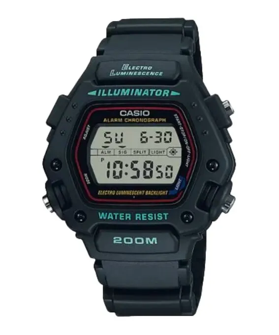 Заявленной влагозащиты Casio Sports DW-290-1V в 200WR вполне хватит, чтобы повторить сцену с подводным бункером из фильма «Миссия невыполнима: Племя изгоев». Также в плюсы можно вписать будильник, календарь, таймер, секундомер и второй часовой пояс.