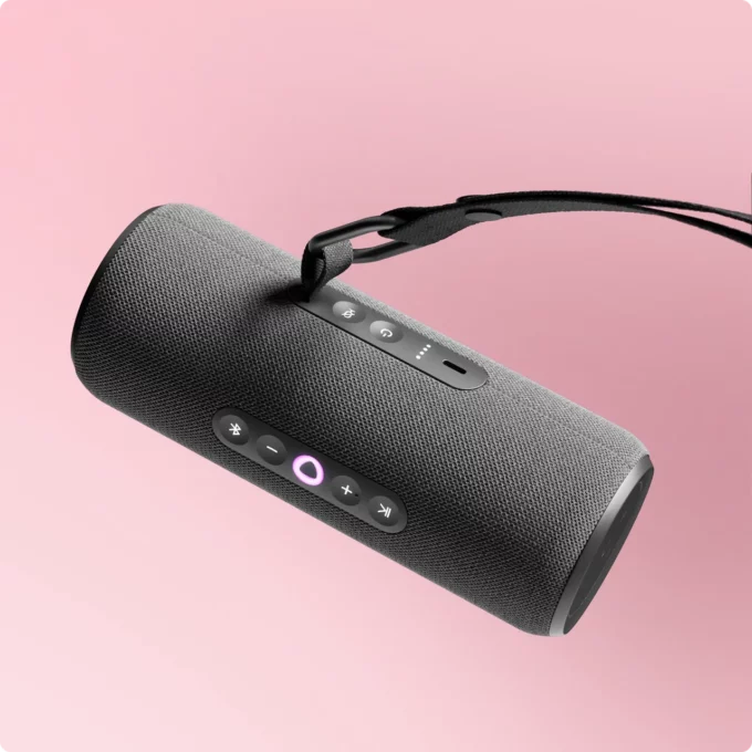 Компания «Яндекс» представила первую в линейке переносную умную колонку с «Алисой». Она имеет форму цилиндра и ремешок (проще держать в руке и таскать с собой), батарею и защиту от влаги.