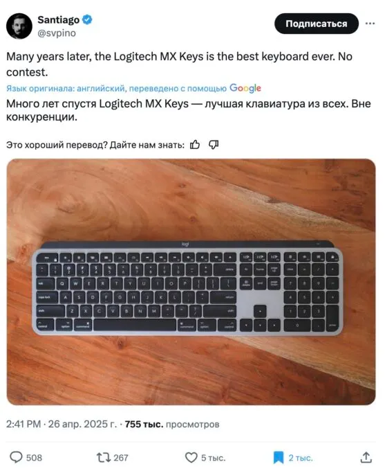 Автор уверен, что клавиатура Logitech — абсолютно лучшая на рынке. Его заявление подтвердили 5 тысячами лайков за пару суток.