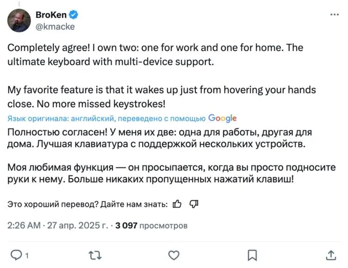 Оказалось, что у MX Keys очень много адептов. Вот реплаи некоторых из них: