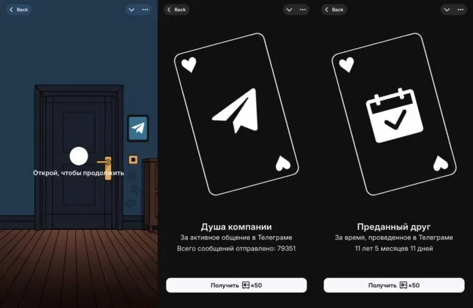 Приложение оценивает активность пользователя и дает несколько стартовых бонусов — например, за количество отправленных сообщений и статус Telegram Premium. После открытия аппа игрок появляется в доме, где есть несколько комнат (между ними можно переключаться свайпами).