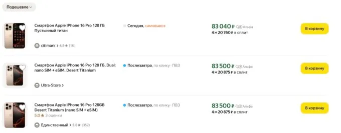 Это реально — вот стартовый iPhone 16 Pro, ценник на который начинается с 83 500 рублей. Это очень адекватный прайс за смартфон с передовым дисплеем, самым продвинутым процессором и камерой профессионального уровня. Сложно представить, но на старте продаж этот девайс отдавали за 150-160 тысяч рублей!