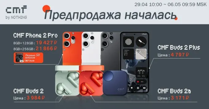 Под брендом CMF буквально недавно представили новый смартфон и кучу наушников, а уже сейчас юзеры из России могут заказать их на Али. Есть шанс получить презент от магазина: первые 50 покупателей CMF Phone 2 Pro получат гарнитуру CMF Buds.