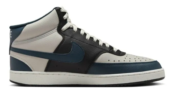 Начнем с кроссовок, которые порадуют любителей mid-обуви. Это Court Vision Next Nature, отсылающие к классической баскетбольной обуви из восьмидесятых. Верх выполнен из прочной синтетической кожи, а перфорация на носке и по бокам отвечает за воздухопроницаемость. Получается приятный демисезонный айтем.