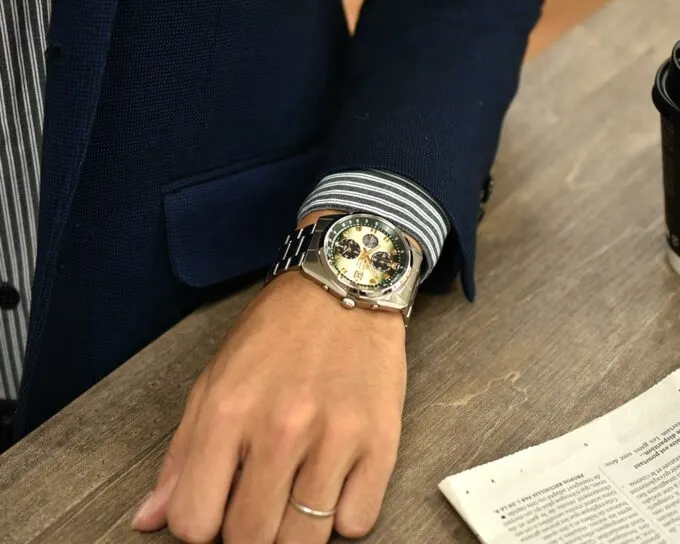 Ещё одна классика из 70-х с современным прочтением, но в этот раз от швейцарских мастеров. Модель Tissot PRX T137.410.11.091.00 — удачное переосмысление дизайна 1978 года. Внешне они похожи на те самые Audemars Piguet Royal Oak, в которых Гурам Амарян флексил в последнем эпизоде «Вписки». Корпус и браслет сделаны из нержавеющей стали 316L выглядят лаконично и премиально, а благодаря толщине всего 10,4 мм часы удобно сидят даже на тонком запястье.