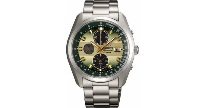 Часы Orient WV0021TY работают от солнечной батареи, не требуя подзавода или замены элементов питания. Ещё пачка плюсов этой модели — секундомер с точностью 1/5 секунды, тахиметрическая шкала, будильник и отдельное окно даты. Ну, влагозащиты в 100WR хватит для любых водных активностей, поскольку вся конструкция выдерживает давление воды до 100 метров.