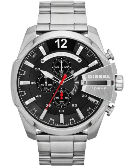Самые брутальные часы, сочетающие в себе итальянскую дерзость в дизайне и шикарную функциональность. Diesel Mega Chief DZ4308 предлагают серебристый корпус и браслет из нержавеющей стали 316L. Черный циферблат с люминесцентными стрелками прикрыт солидным минеральным стеклом. Модель получилась довольно эффектной и читаемой даже в темноте.