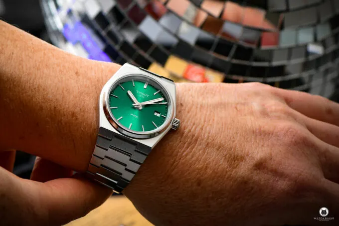 Циферблат Tissot PRX T137.410.11.091.00 выделяется насыщенным зелёным цветом с радиальным узором и стрелками с покрытием Superluminova, обеспечивающими читаемость в темноте. Внутри — точный кварцевый механизм ETA F06.115, защищённый сапфировым стеклом. Влагозащиты 100WR хватит для плавания даже в глубоких бассейнах. В целом, PRX — не просто часы, а заявка на вкус, статус и внимание к деталям.
