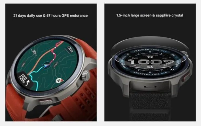 Тут есть пульсометр и пульсоксиметр, функция мониторинга сна и стресса, прочие умные фишки. Конечно, загрузили много режимов тренировки. По сравнению с оригиналом батарея Balance 2 выросла почти на 200 мАч — до 658 мАч. Автономность резко увеличилась сразу на неделю — до 21 дня. С активным GPS часы могут проработать 67 часов.