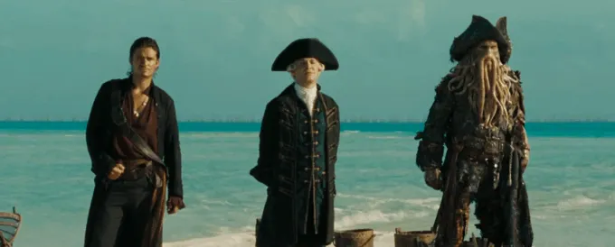 А вот дальше уже получилось так, что он угрохал корабль и только тогда заключил сделку с Дэйви Джонсом. Упущенный кусок лора. Гор Вербински и продюсеры убрали сцену, потому что посчитали, что она уводит внимание зрителей от основного сюжета и показывает Джека скорее социальным активистом, чем авантюристом, хотя ранее мы не видели эту его сторону.