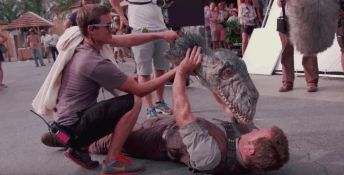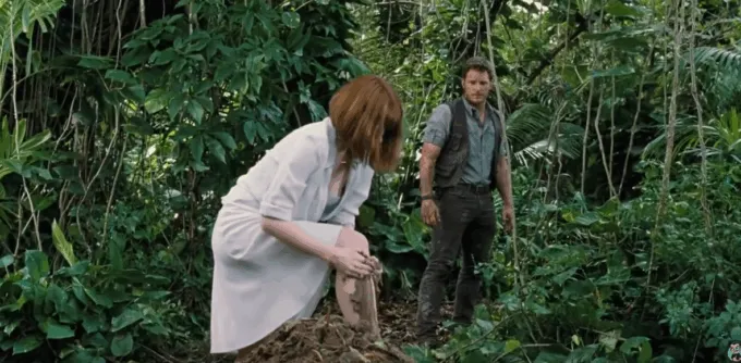 Слушайте, мы это не придумываем. Эта сцена существует и ее даже можно посмотреть. В ней Оуэн (Крис Пратт) и Клэр (Брайс Даллас Ховард) говорят о том, что нужно каким-то образом избавиться от запаха ванильного лосьона, чтобы их не почуяли динозавры. Оуэн предлагает использовать для этого кучу того, что археологи обычно находят в виде копролитов. Затем он предлагает Клэр помощь, но она прекрасно справляется сама.