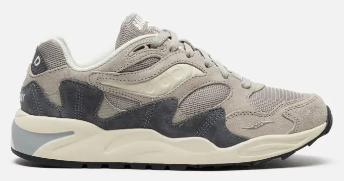 Завершаем мини-подборку с помощью массивных Grid Shadow 2, выполненных в серо-кремовой расцветке. Дышащий текстильный верх этих кроссовок украшен накладками из искусственной и натуральной кожи. Цепкий рисунок протектора обеспечивает идеальное сцепление с дорогой, а амортизирующая подошва отвечает за комфорт во время ходьбы. Топовый и небанальный вариант для повседневной носки.