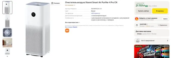 Сейчас шикарный очиститель воздуха Xiaomi Air Smart Purifier 4 Pro можно купить на Яндекс Маркете за 21 701 рубль. Также не забывайте, что с кэшбеками некоторых банков этот девайс обойдётся ещё дешевле.