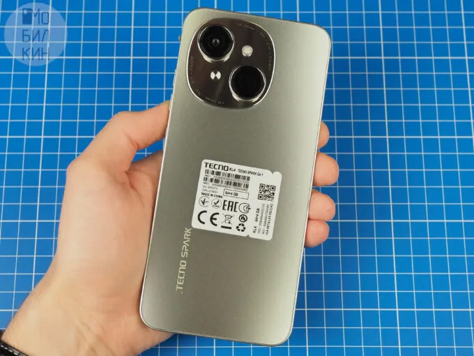 У Spark Go 1 простой и приятный дизайн — плоский матовый задник, плоские рамки с небольшим скруглением, основная камера на овальном блоке. Телефон немаленький, но в руке держится удобно. Установленный в кнопку включения сканер отпечатка пальцев срабатывает быстро и хорошо.