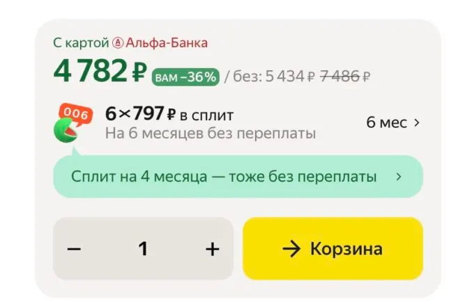 - У Яндекса есть без шуток легендарный Сплит. Благодаря агрессивной рекламе о сервисе знают даже те, кто никогда не покупал на Маркете. Вообще Сплит давно перерос статус придатка Яндекс Маркета (например, им можно оплачивать покупки в обычном магазине), но постараемся рассказать о нем кратко.